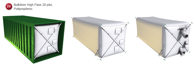 Revestimento interno para contêiner de aço de 20” e 40” para o transporte de materiais sólidos na forma de pó ou grãos, assegurando a eles sua integridade e proteção contra contaminações.