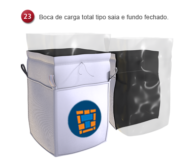 Mag bag impermeável - Para facilitar o sistema de descarga de produtos que escoam com enorme facilidade, possuem características higroscópicas e eexigem a impermeabilidade da embalagem, a Topack do Brasil desenvolveu, em parceria com seus clientes, um modelo de contentor denominado "LINER COLADO", em que o polietileno é fixado internamente ao corpo do contentor por sistema de colagem atóxico e inodoro, permitindo a sua total aderência ao tecido de polipropileno, sem utilizar costuras ou soldas que venham a causar possíveis microperfurações e vazamentos no polietileno.