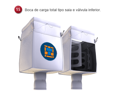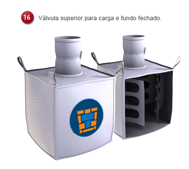 Containers flexíveis confeccionados em tecido de polipropileno, com sistema de fixação das alças em toda a altura do Mag Bag, proporcionando o formato caixote.