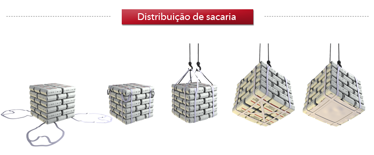 Alças para pré-lingagem em fitas de polipropileno, com alta resistência e tenacidade. Uma nova alternativa ao uso de pallets, com peso reduzidíssimo (aproximadamente 1.200 kg), não sendo agressivo à sacaria, pois não contém farpas, pregos, cantos e não deixa espaço vazio. Proporciona rapidez na carga e descarga de veículos e, com o auxílio de “gabaritos”, permite-se fazer carga ou descarga em uma única operação.